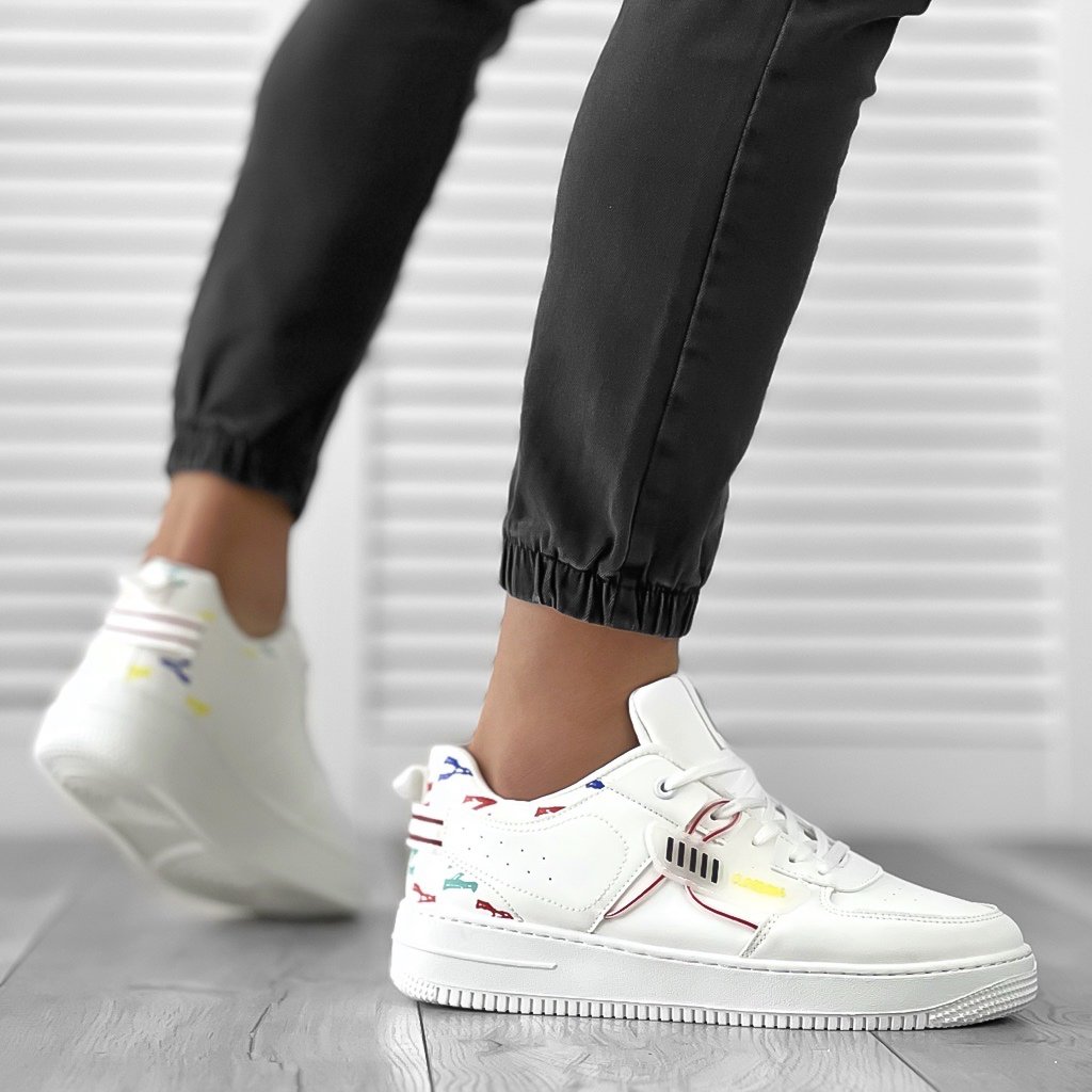 Adidasi barbati albi cu imprimeu R868 - Fashion Mix- Marketplace - Anunturi