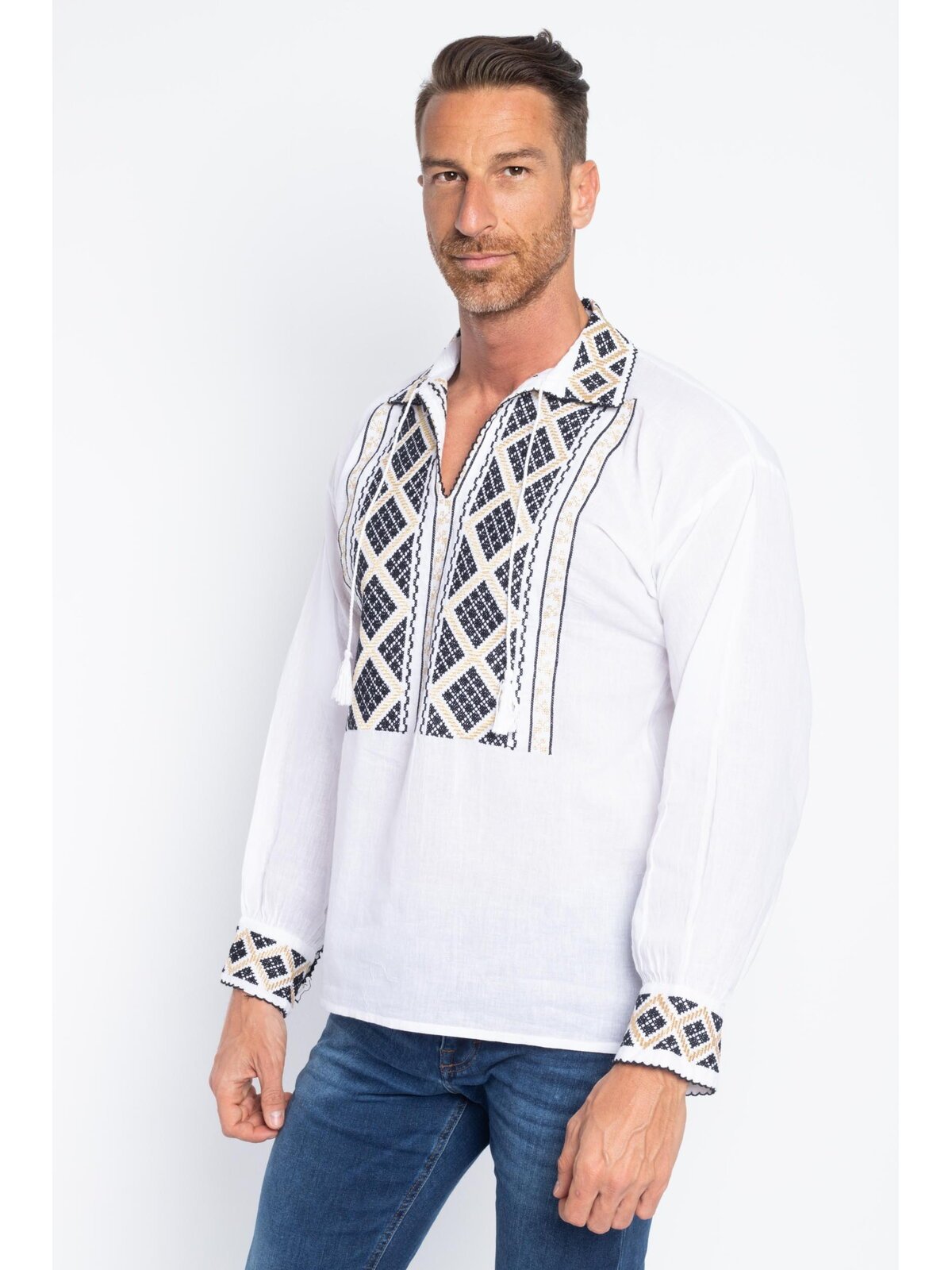 Bluza barbat tip ie din bumbac alb cu model traditional - Fashion Mix- Marketplace - Anunturi