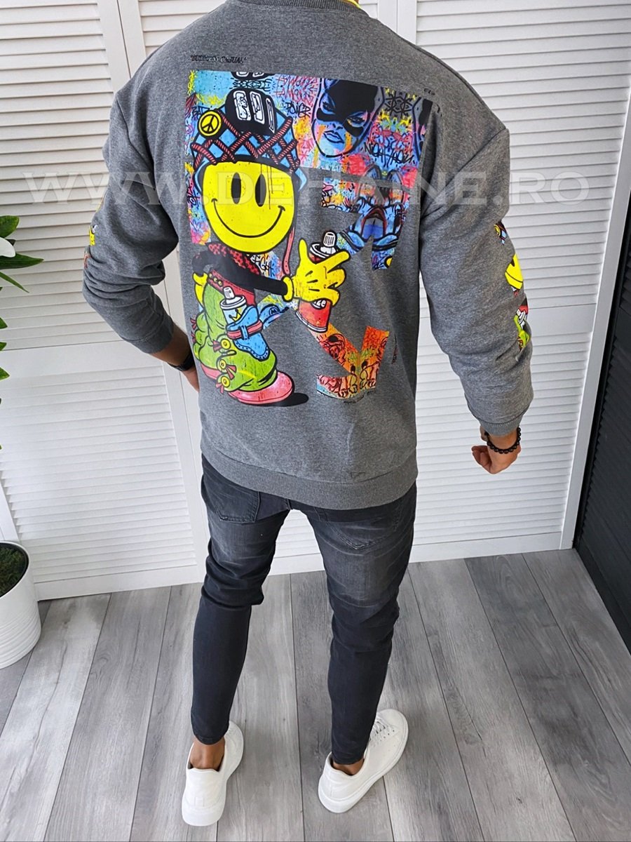 Bluza barbati gri slim fit cu imprimeu pe spate K431 23.3-1 - Fashion Mix- Marketplace - Anunturi