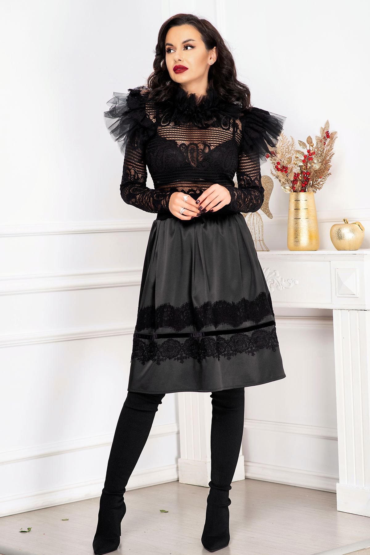 Bluza din dantela Venezia neagra cu guler amplu si volane la umeri Culoare: negruTextura: dantelaManeci lungi Croi drept cambratMaterial usor elasticVolan amplu si dantela neagra aplicata la umeriGuler cret tip epoca din tulle si dantelaMaterial usor elasticInchidere cu snur la baza gatuluiCompozitie: 80% poliester 17% vascoza 3% elastanFabricat in Romania* Echipa InPuff face toate eforturile in a prezenta cat mai bine culorile produselor prezentate pe site insa culorile pot diferi de situatia reala si pot varia în functie de setarile monitorului/dispozitivului dvs!