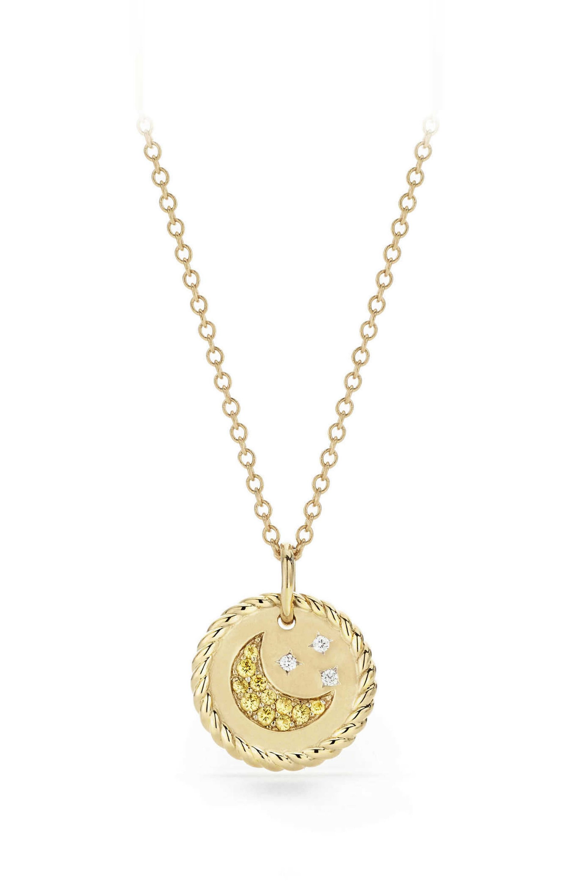 Cable Collectibles Moon & Stars Necklace with Diamonds & Yellow Sapphires in 18K Gold