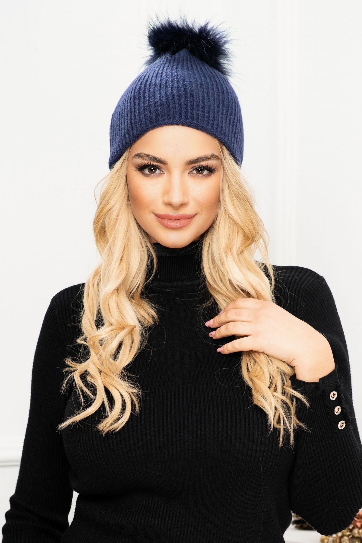 Caciula trendy bleumarin cu mot din blanita