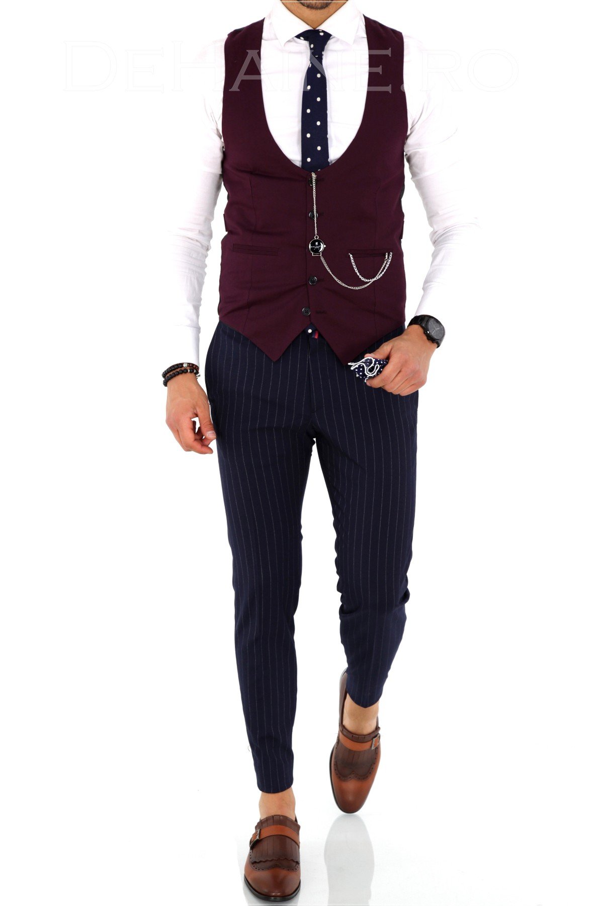 Compleu barbati Vesta + PantaloniCompleu barbati office - compleu fashion - compleu elegant - compleu nunta - compleu botez Compleu Slim fit Material 97 % bumbac si 3 % Poliester (compleul nu are licra deci nu se intinde) Accesoriul nu este inclus Compleul cuprinde urmatoarele piese: Vesta Pantaloni (ti-i poti scurta si stramta la croitorie cat ai nevoie) Dimensiune pantaloni: Dimensiune pantaloni Talie (cm) Lungime (cm) 30 39 102 31 40.5 102 32 42 102 33 43.5 102 34 45 102 36 46.5 102 Dimensiune vesta Talie (cm)..