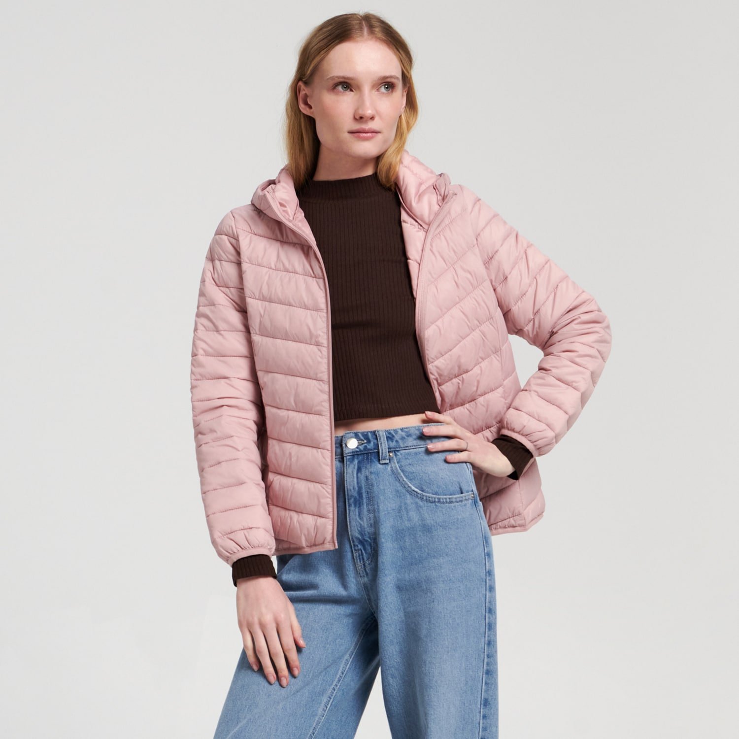 Geacă matlasată, cu glugă - Roz