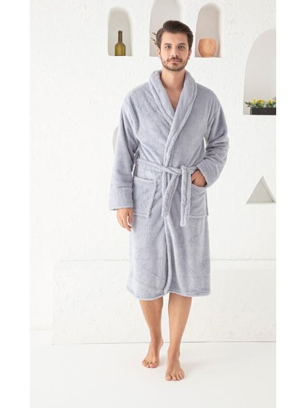 Culoare: Gri<br />Material: micro<br />Compozitie: 100 %mikro<br />Tip produs: halat<br />Lungime maneca: Lunga<br />Forma decolteu: in v<br />Sistem de inchidere: cu cordon<br />Buzunare: 2 buzunare laterale