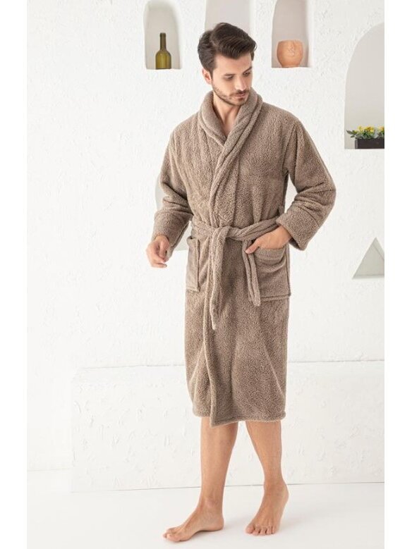 Culoare: Maro<br />Material: micro<br />Compozitie: 100 %mikro<br />Tip produs: halat<br />Lungime maneca: Lunga<br />Forma decolteu: in v<br />Sistem de inchidere: cu cordon<br />Buzunare: 2 buzunare laterale