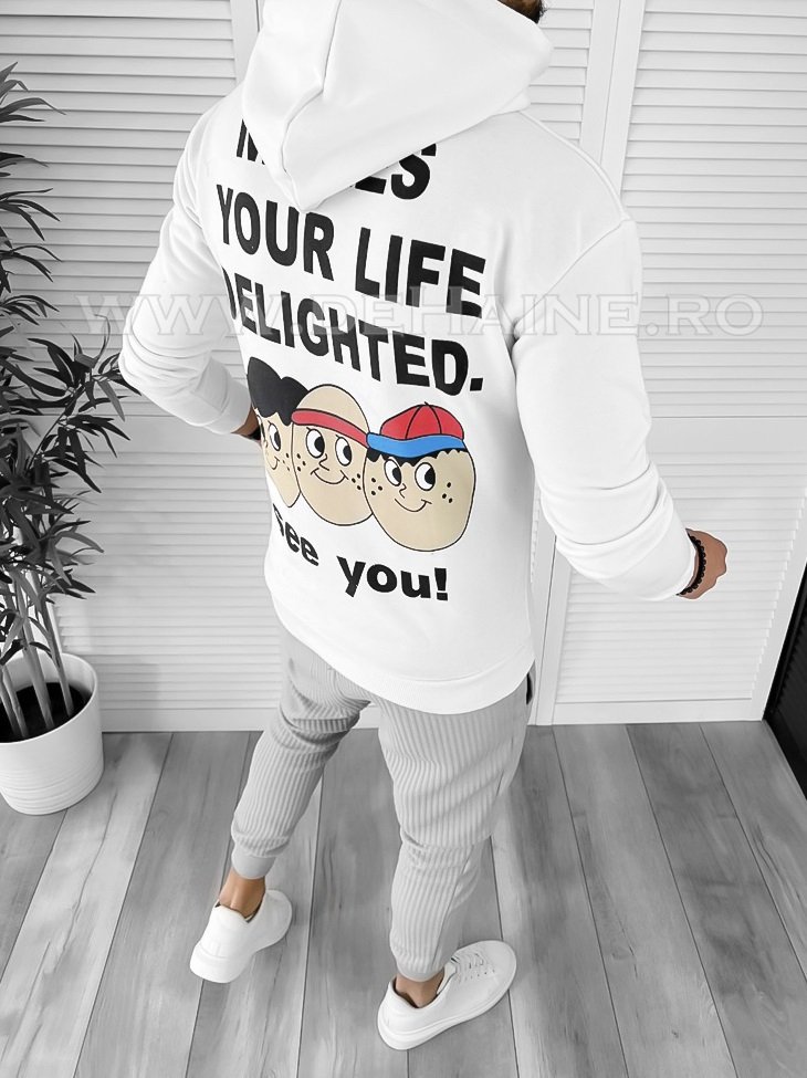 Hanorac barbati alb slim fit cu imprimeu pe spate K054 E 53-2*/ 28-1 - Fashion Mix- Marketplace - Anunturi