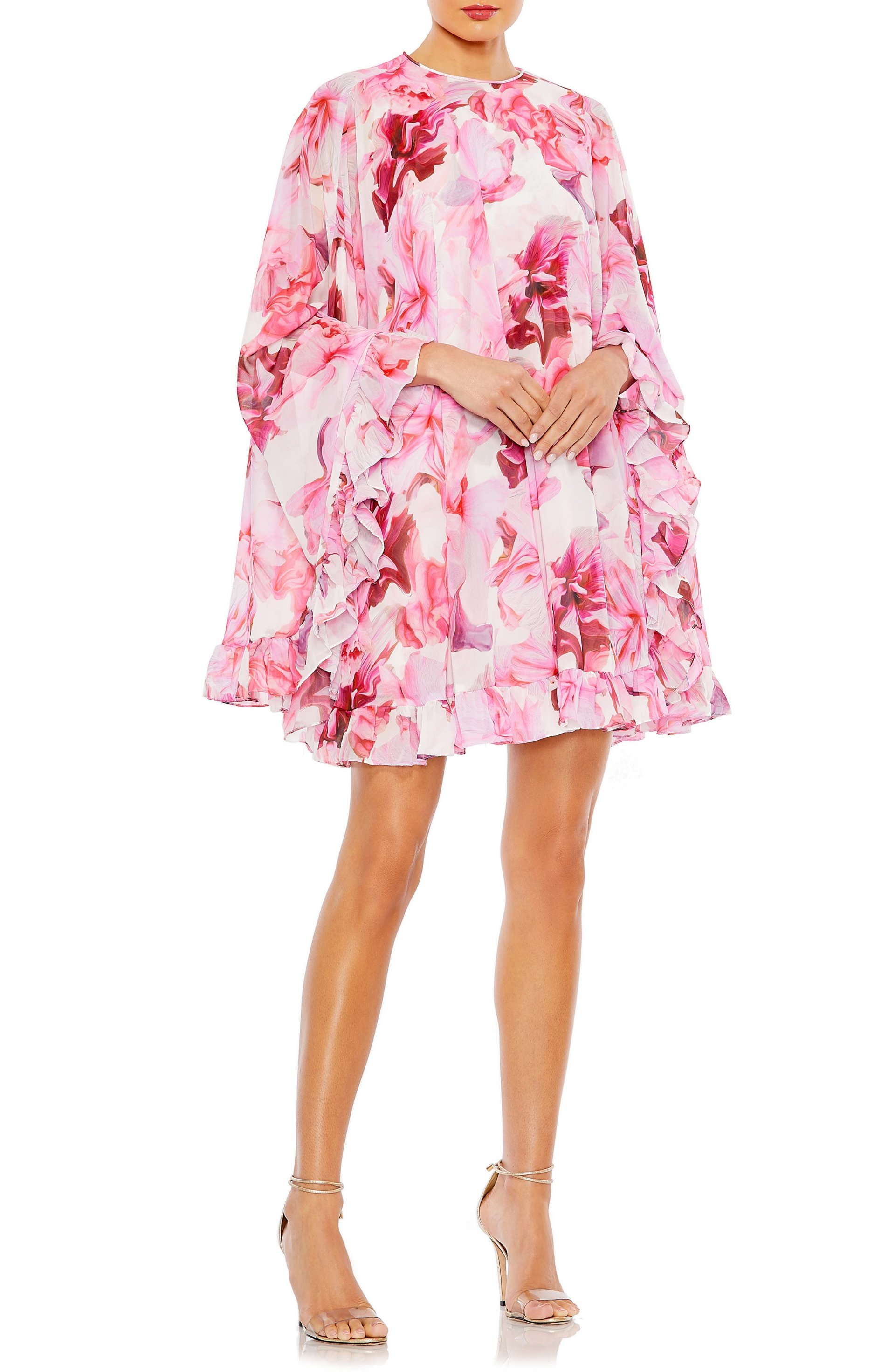 Marbleized Floral Long Sleeve Cape Minidress - Fashion Mix- Marketplace - Anunturi