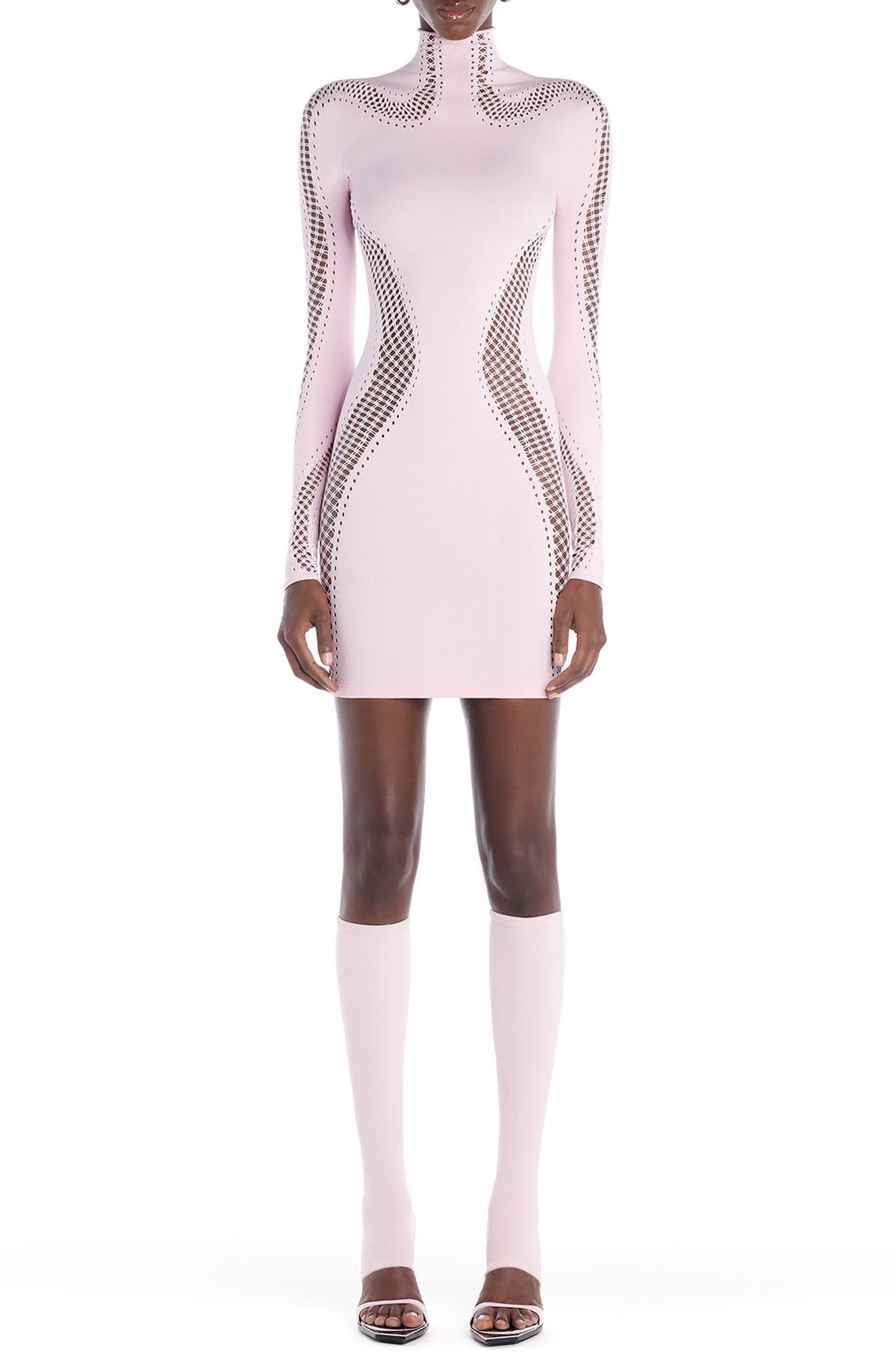 Mesh Panel Long Sleeve Body-Con Minidress - Fashion Mix- Marketplace - Anunturi