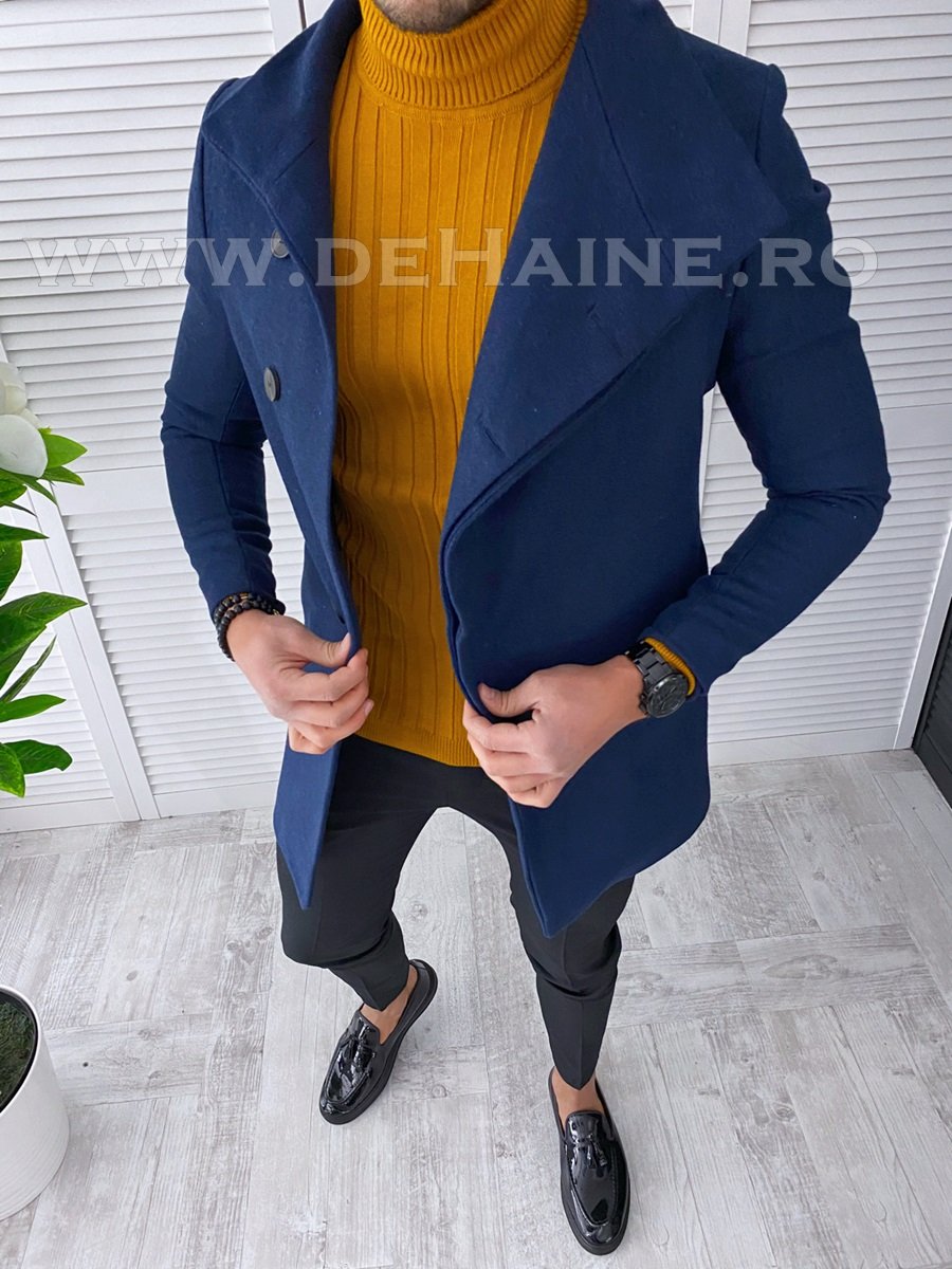 Palton barbati asimetric bleumarin B3076 128-2 - Fashion Mix- Marketplace - Anunturi