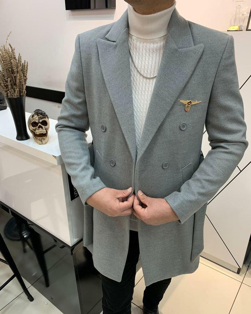 Palton barbati gri deschis B7575 123-3 - Fashion Mix- Marketplace - Anunturi