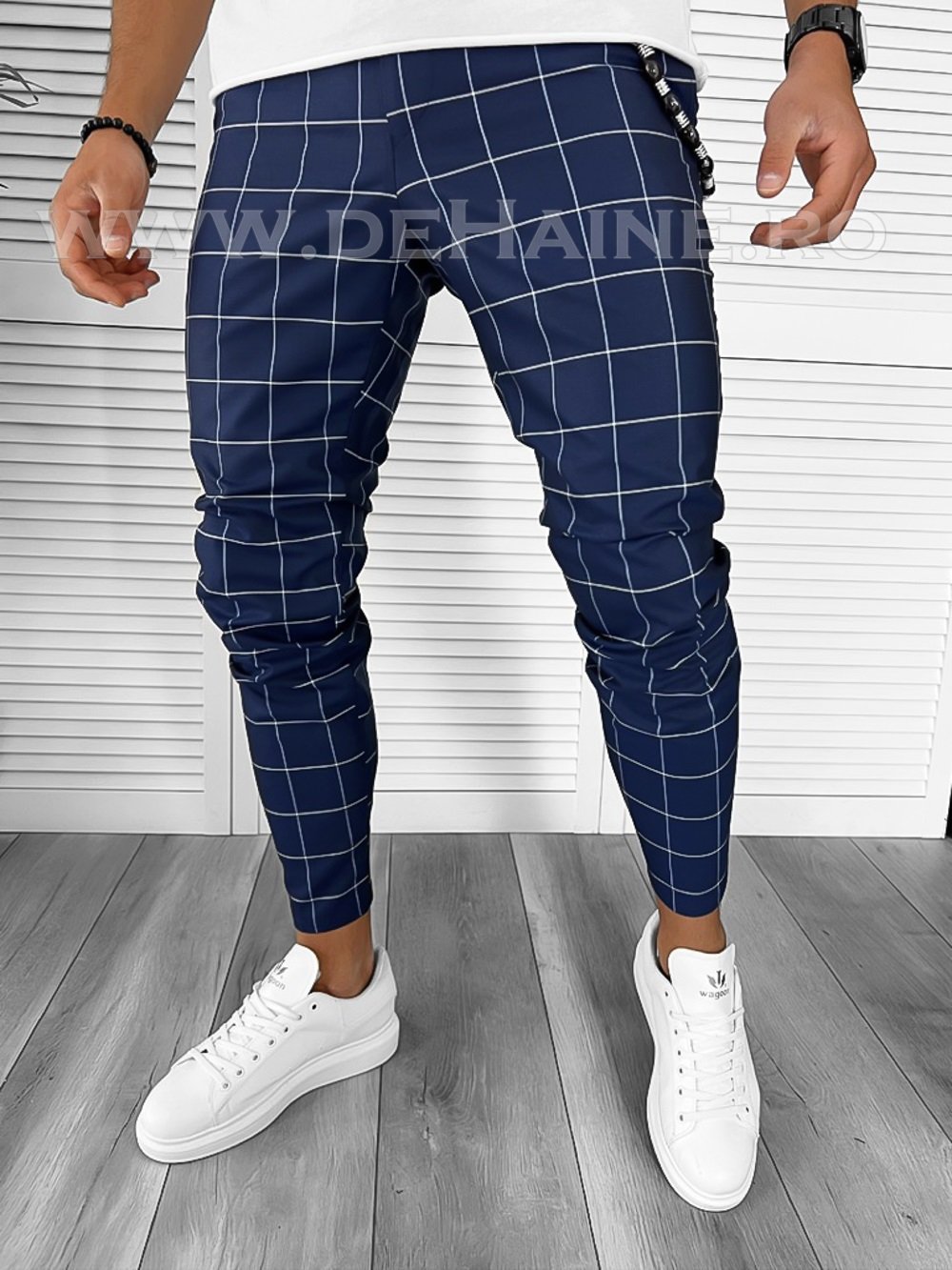 Pantaloni barbati casual regular fit bleumarin in carouri B7880 154-3 E - Fashion Mix- Marketplace - Anunturi