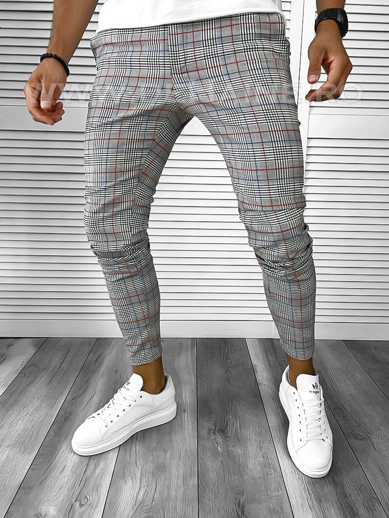 Pantaloni barbati casual regular fit gri in carouri A8452 O2-1.2 - Fashion Mix- Marketplace - Anunturi