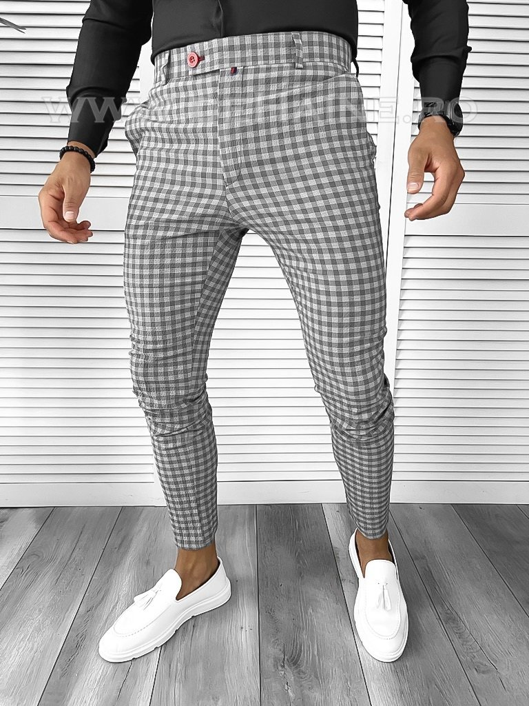 Pantaloni barbati eleganti gri in carouri B1886 2-2* - Fashion Mix- Marketplace - Anunturi