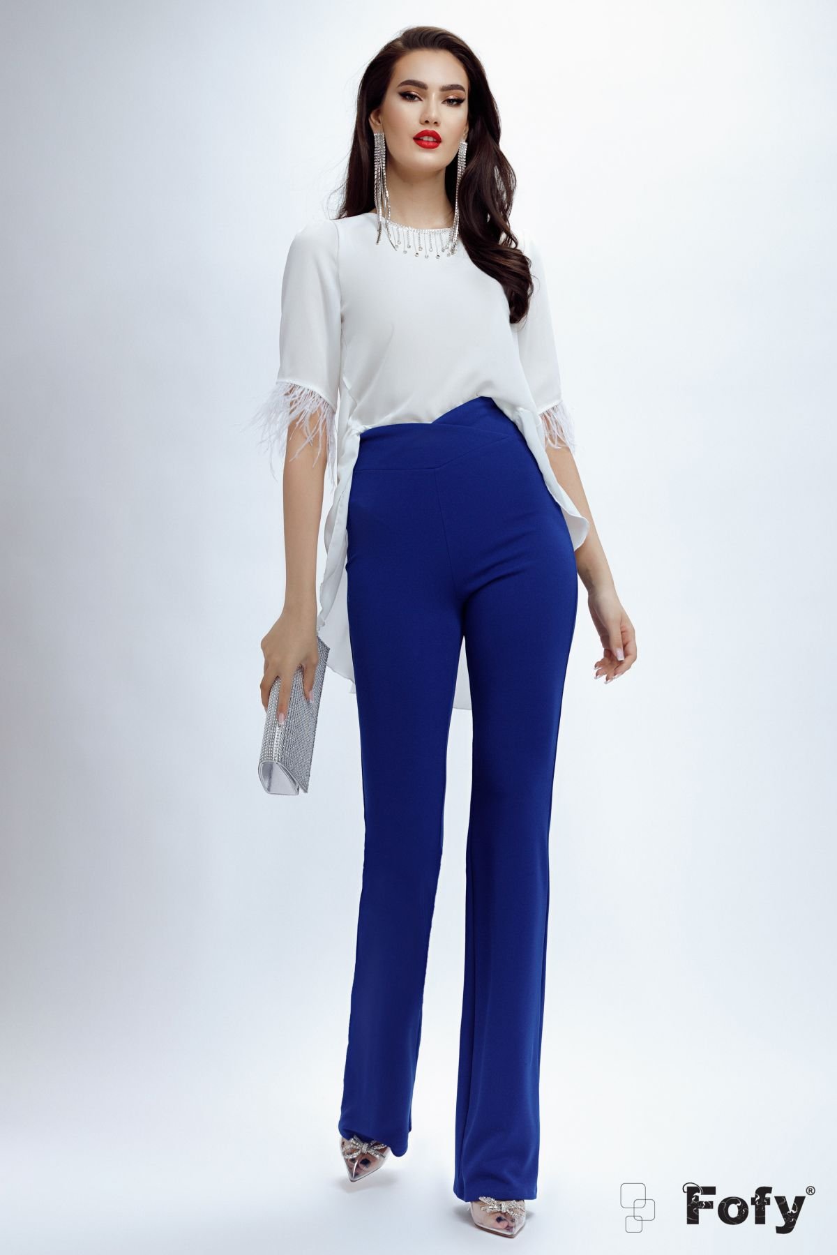 Pantaloni evazati eleganti Fofy albastri cu betelie petrecuta Culoare: albastruCroi evazatTalie inaltaTextura: bistrechMaterial usor elasticInchidere cu fermoar lateralFara buzunareCompozitie: 95% poliester 5% elastanFabricat in Romania* Echipa InPuff face toate eforturile in a prezenta cat mai bine culorile produselor prezentate pe site insa culorile pot diferi de situatia reala si pot varia în functie de setarile monitorului/dispozitivului dvs!