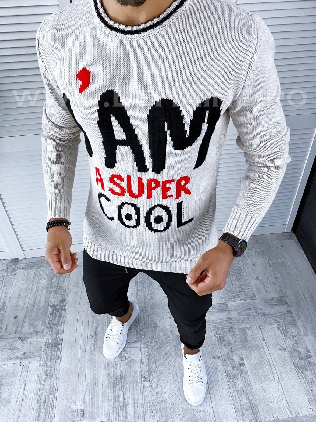Pulover barbati gros slim fit bej T3590 P20-4.1 - Fashion Mix- Marketplace - Anunturi