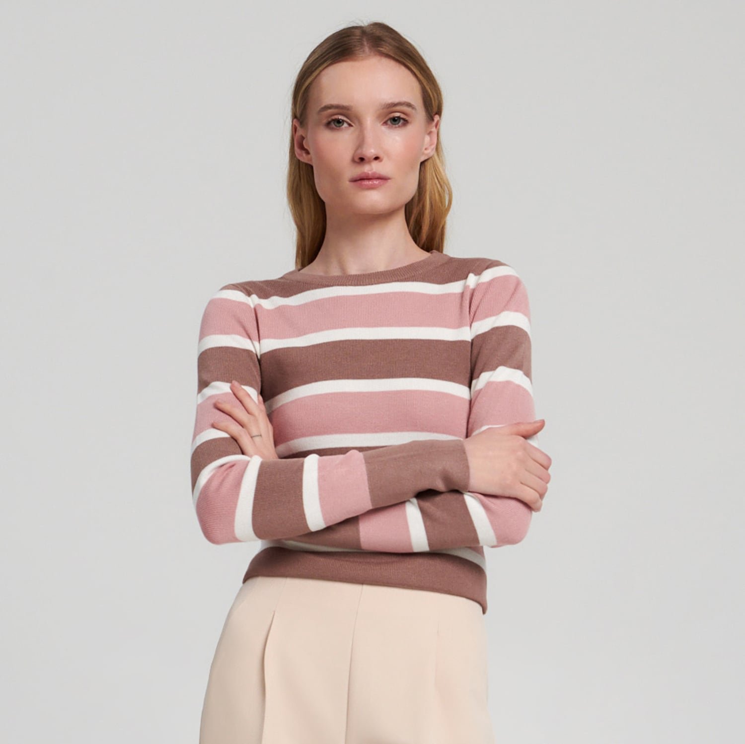 Pulover în dungi - Bej - Fashion Mix- Marketplace - Anunturi