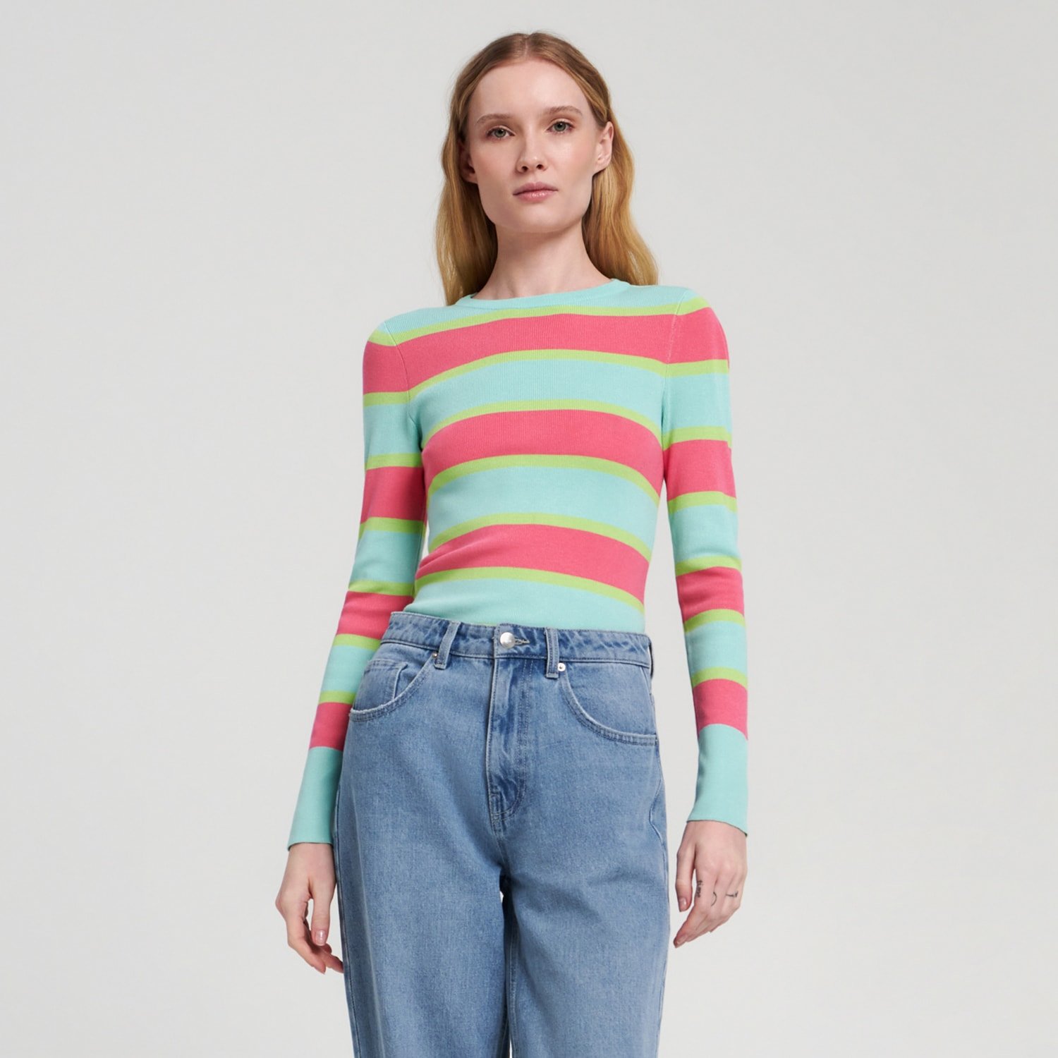 Pulover în dungi - Oranj - Fashion Mix- Marketplace - Anunturi