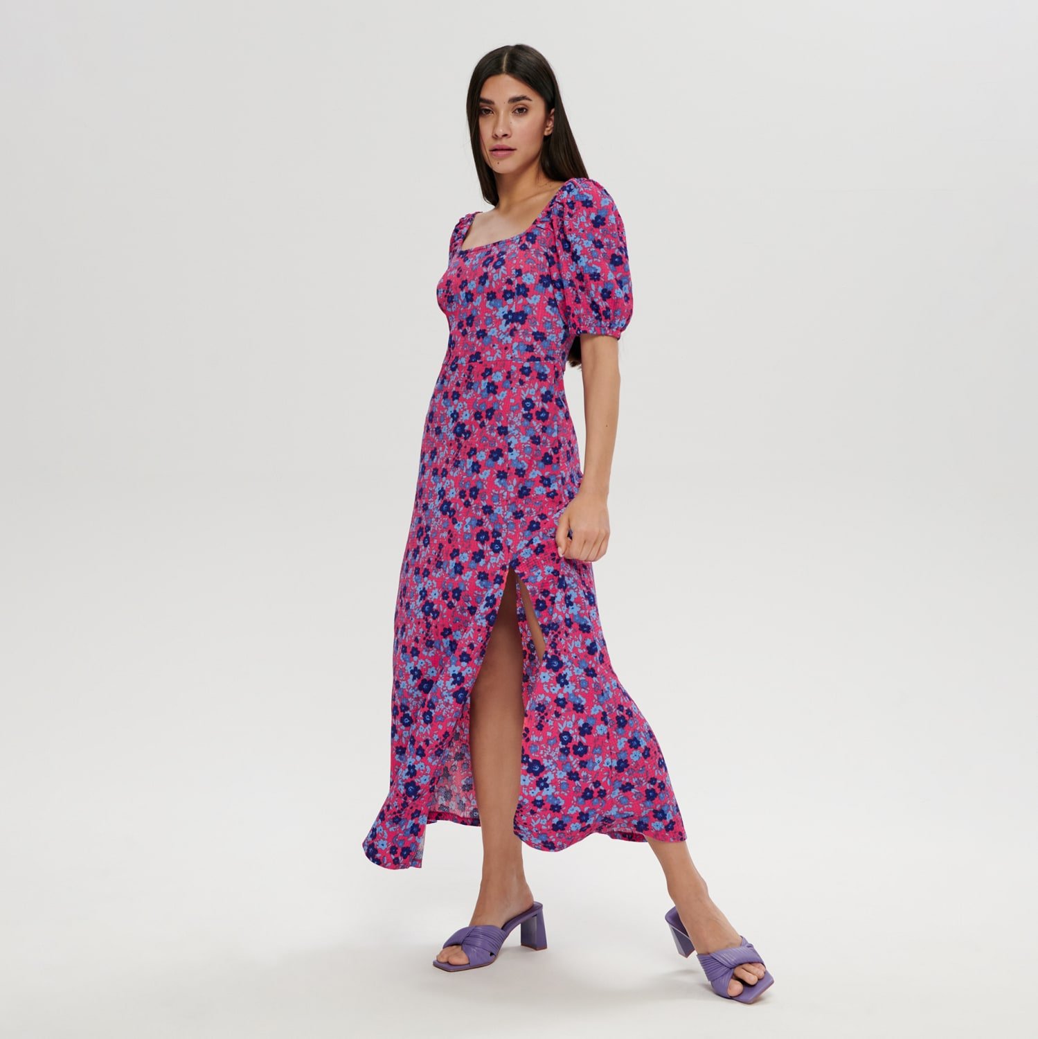 Rochie maxi cu imprimeu floral - Albastru - Fashion Mix- Marketplace - Anunturi