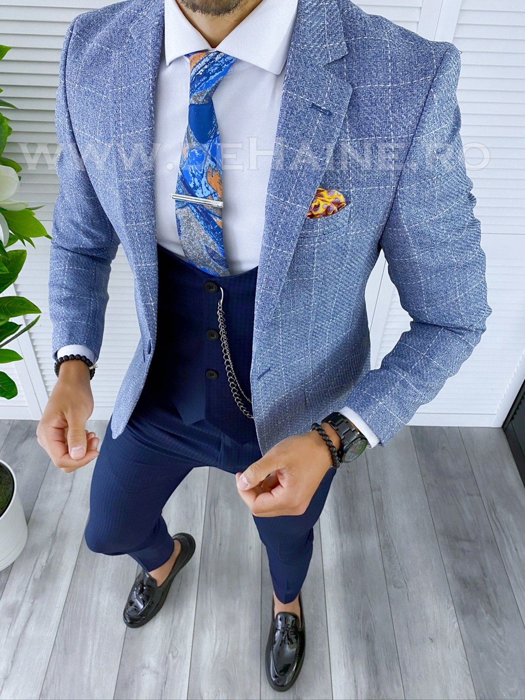 Sacou barbati in carouri slim fit B5308 69-1 E - Fashion Mix- Marketplace - Anunturi