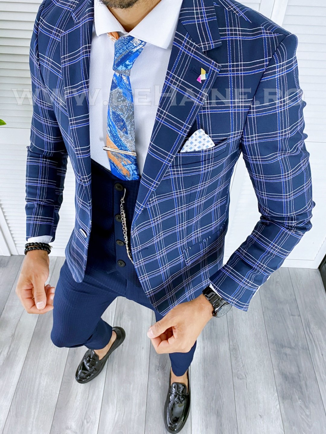 Sacou barbati in carouri slim fit B5589 E - Fashion Mix- Marketplace - Anunturi