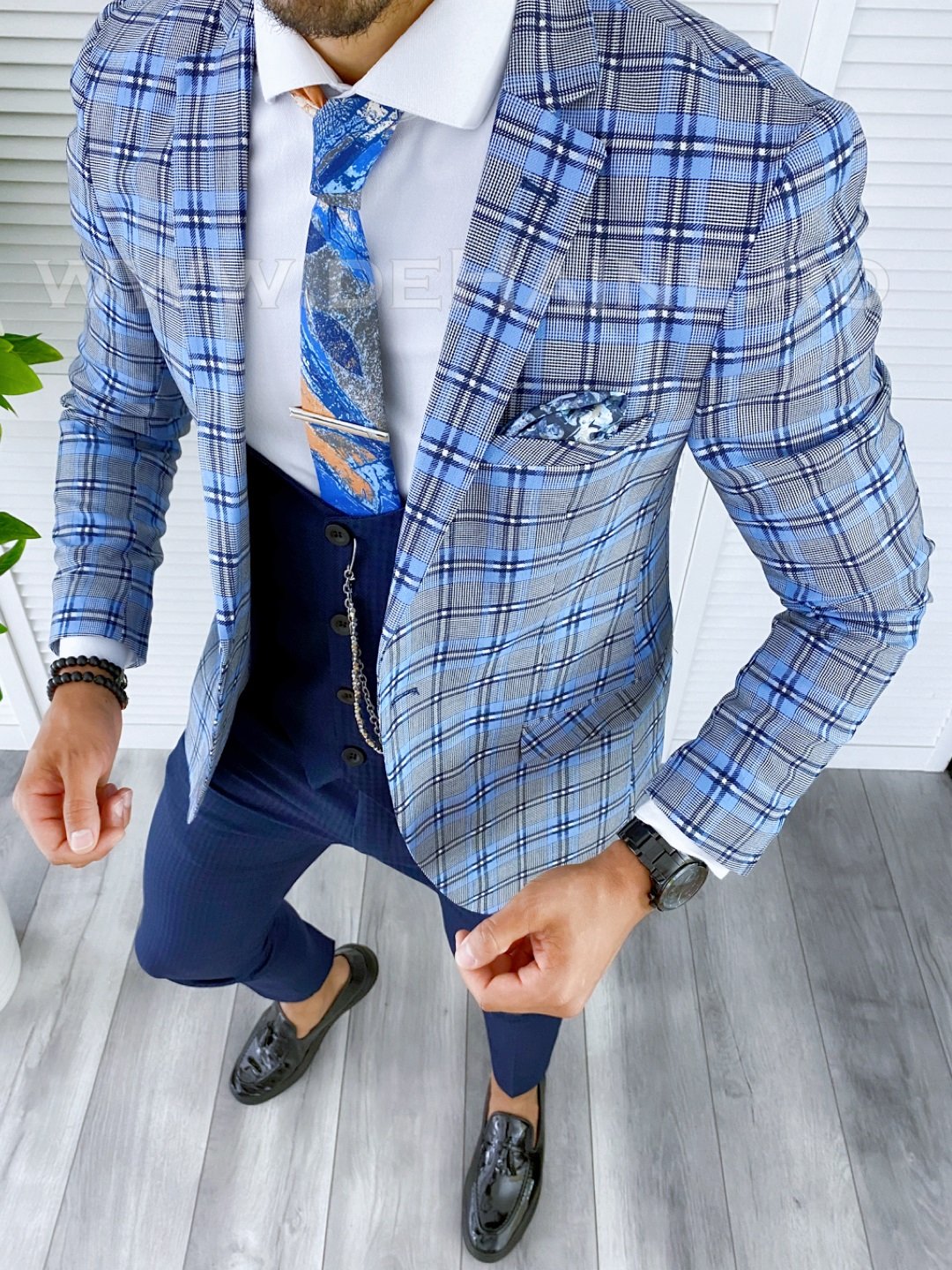 Sacou barbati in carouri slim fit B5594 85-1 E - Fashion Mix- Marketplace - Anunturi