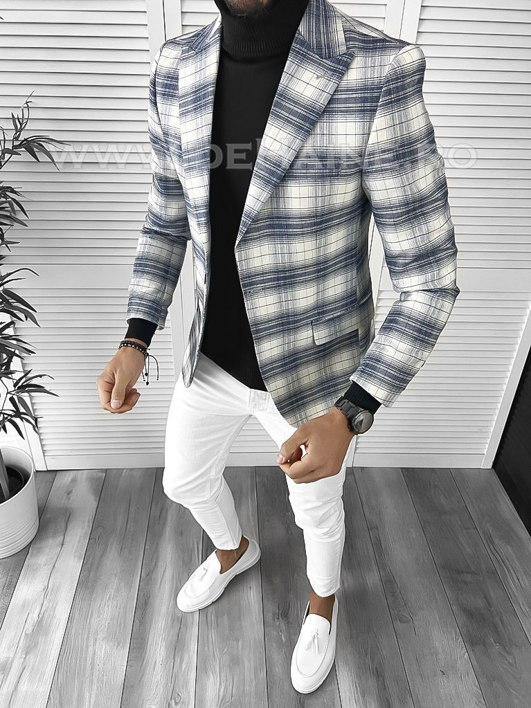 Sacou barbati slim fit in carouri B9745 E - Fashion Mix- Marketplace - Anunturi