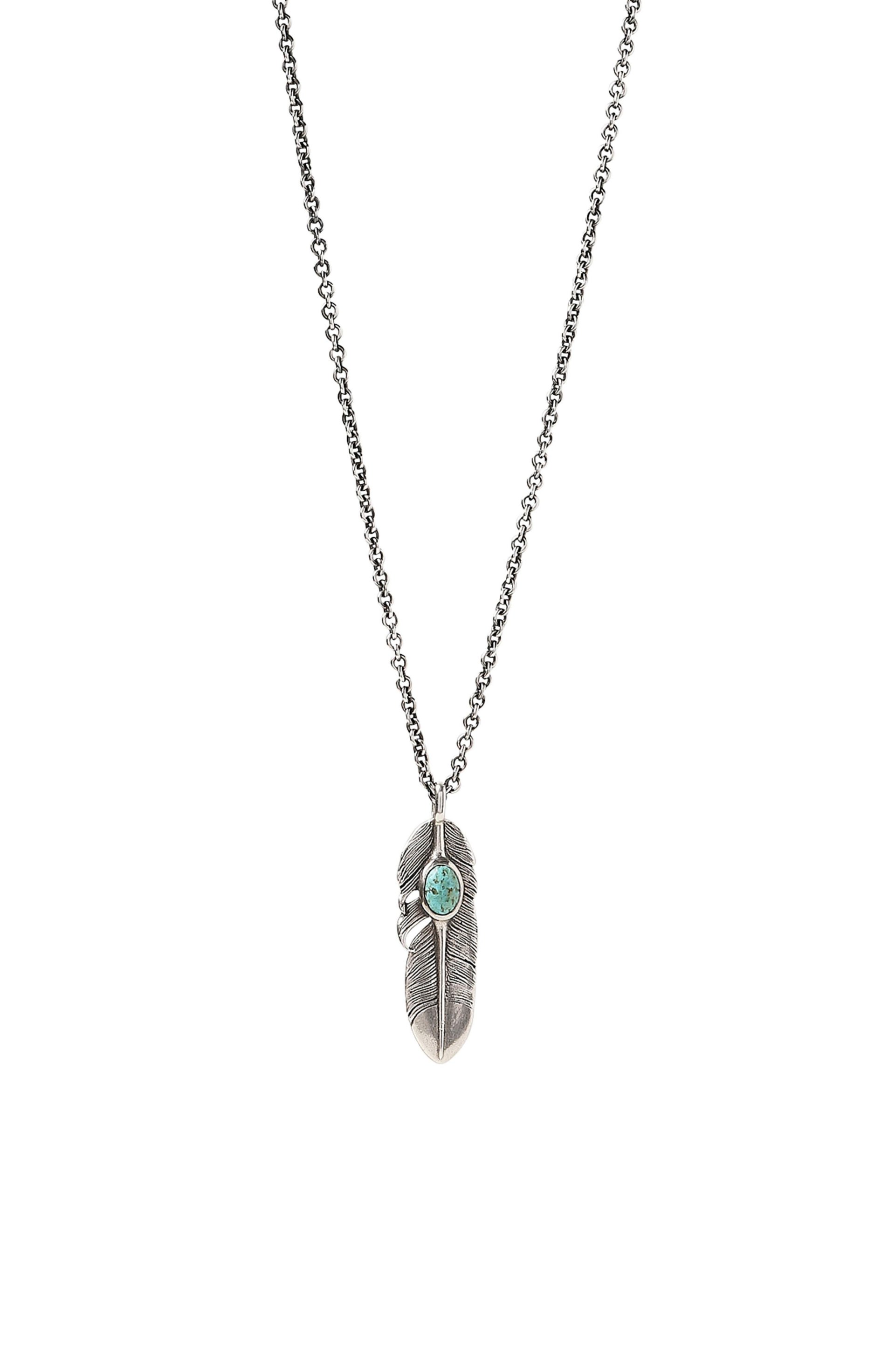 Sterling Silver & Turquoise Feather Pendant Necklace