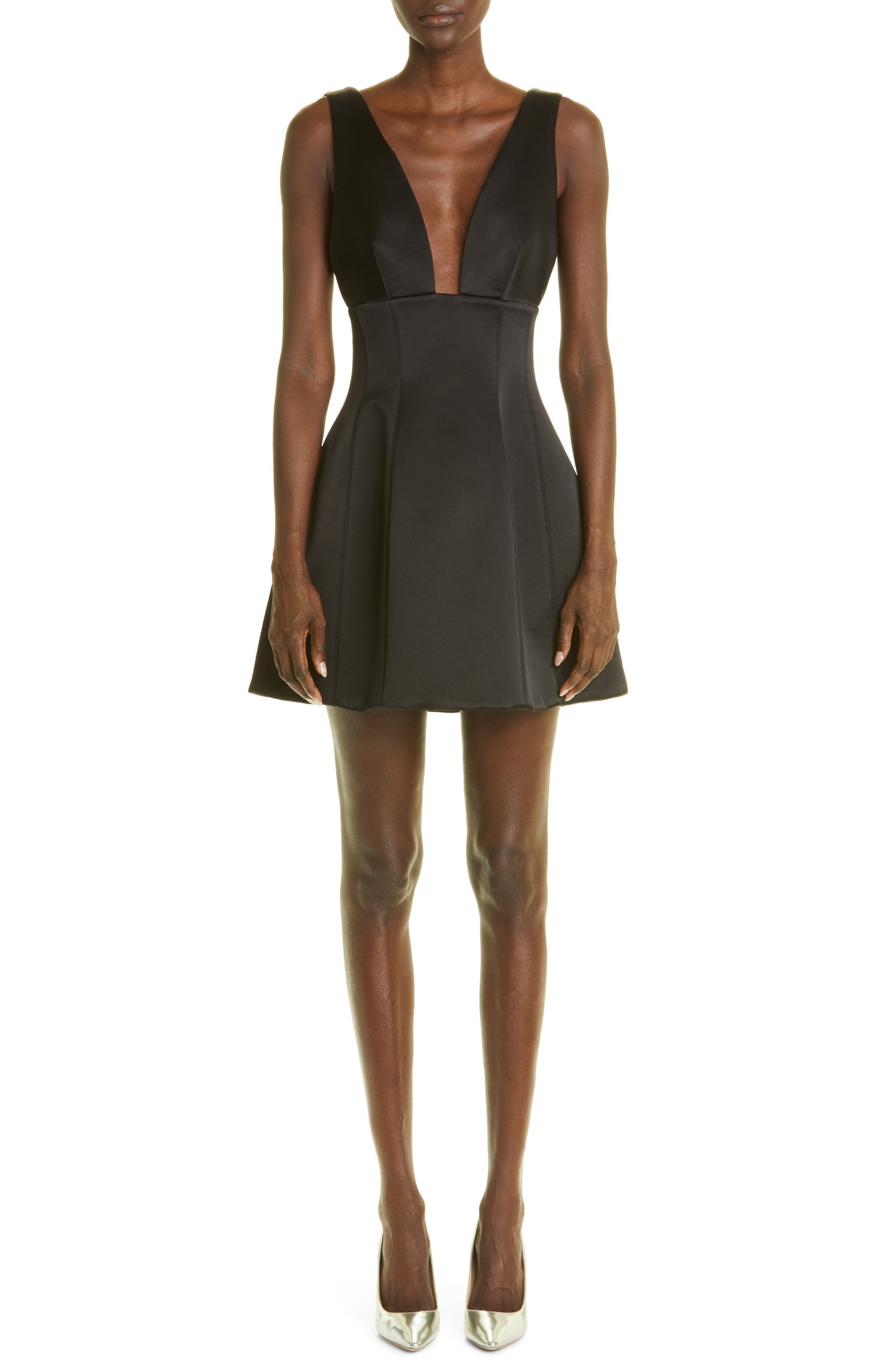The Callie Plunge Neck Silk Bubble Minidress