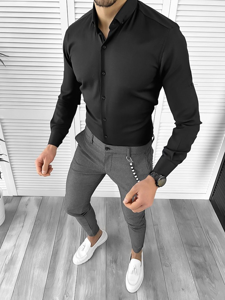 Tinuta smart casual formata din: Camasa slim fit + Pantaloni eleganti Croiala slim fit - Calitate Garantata ..