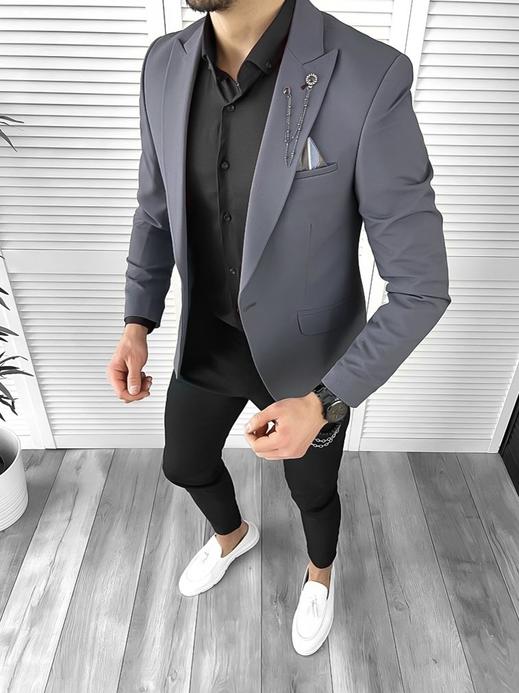 Tinuta smart casual formata din: Camasa slim fit + Pantaloni + Sacou slim fit Croiala slim fit - Calitate Garantata Sacou barbati slim fit gri 10273 E 34-5 ..