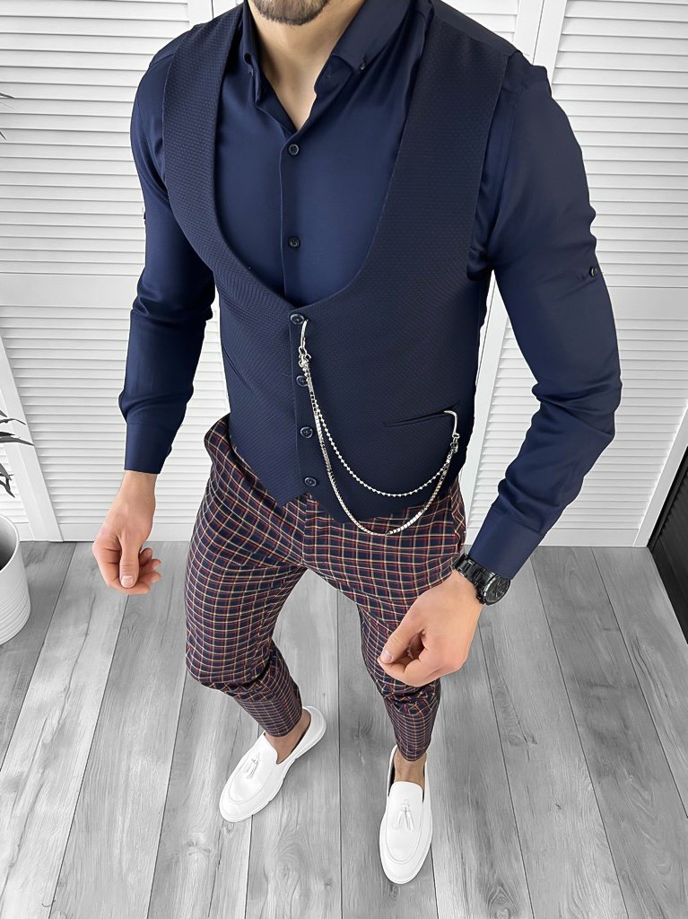Tinuta smart casual formata din: Camasa slim fit + Pantaloni eleganti+ Vesta Croiala slim fit - Calitate Garantata cod pantaloni - 10061 F2-3.3 ..