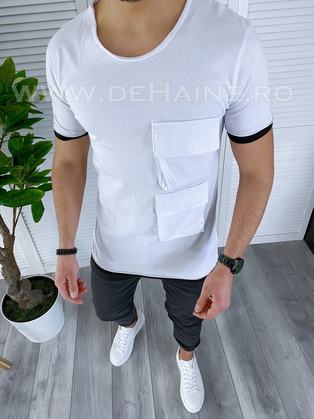 Tricou barbati alb slim fit B1956 X1 - Fashion Mix- Marketplace - Anunturi