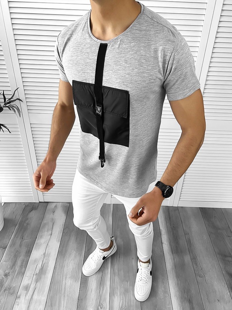 Tricou barbati slim fit gri B1975 V4-4.4 - Fashion Mix- Marketplace - Anunturi