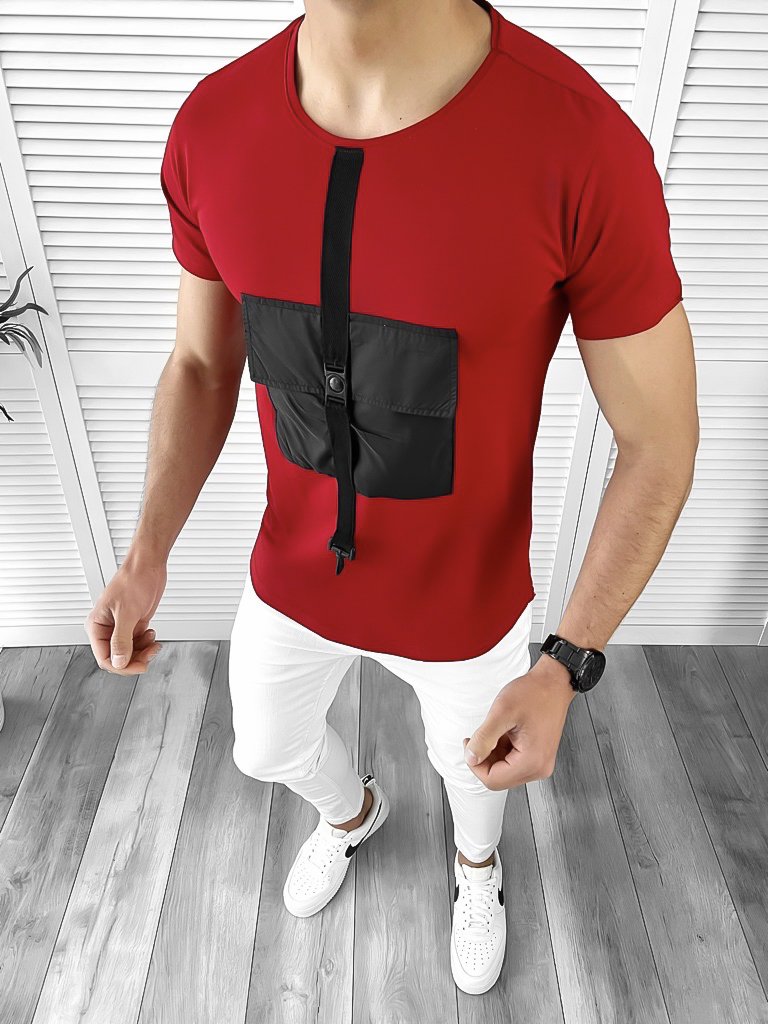 Tricou barbati slim fit rosu B1975 V4 - Fashion Mix- Marketplace - Anunturi